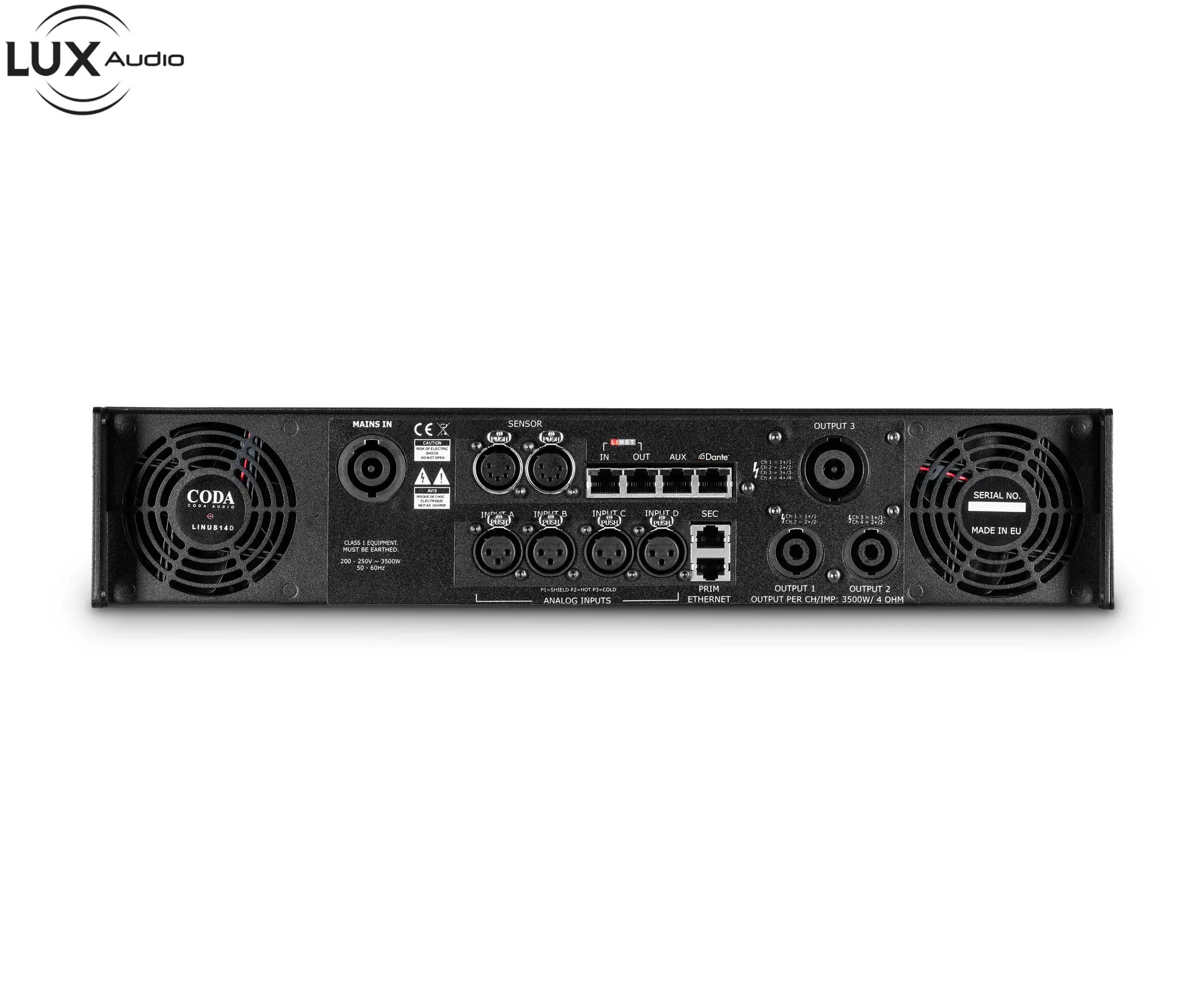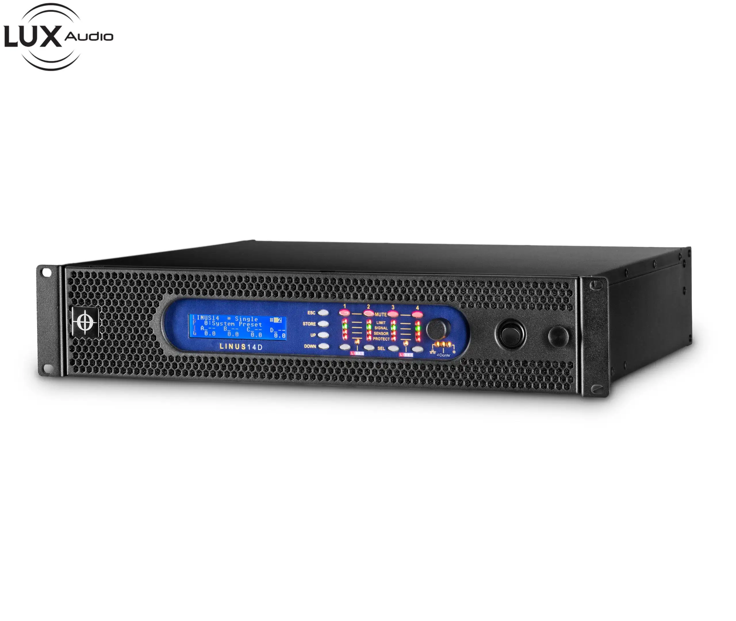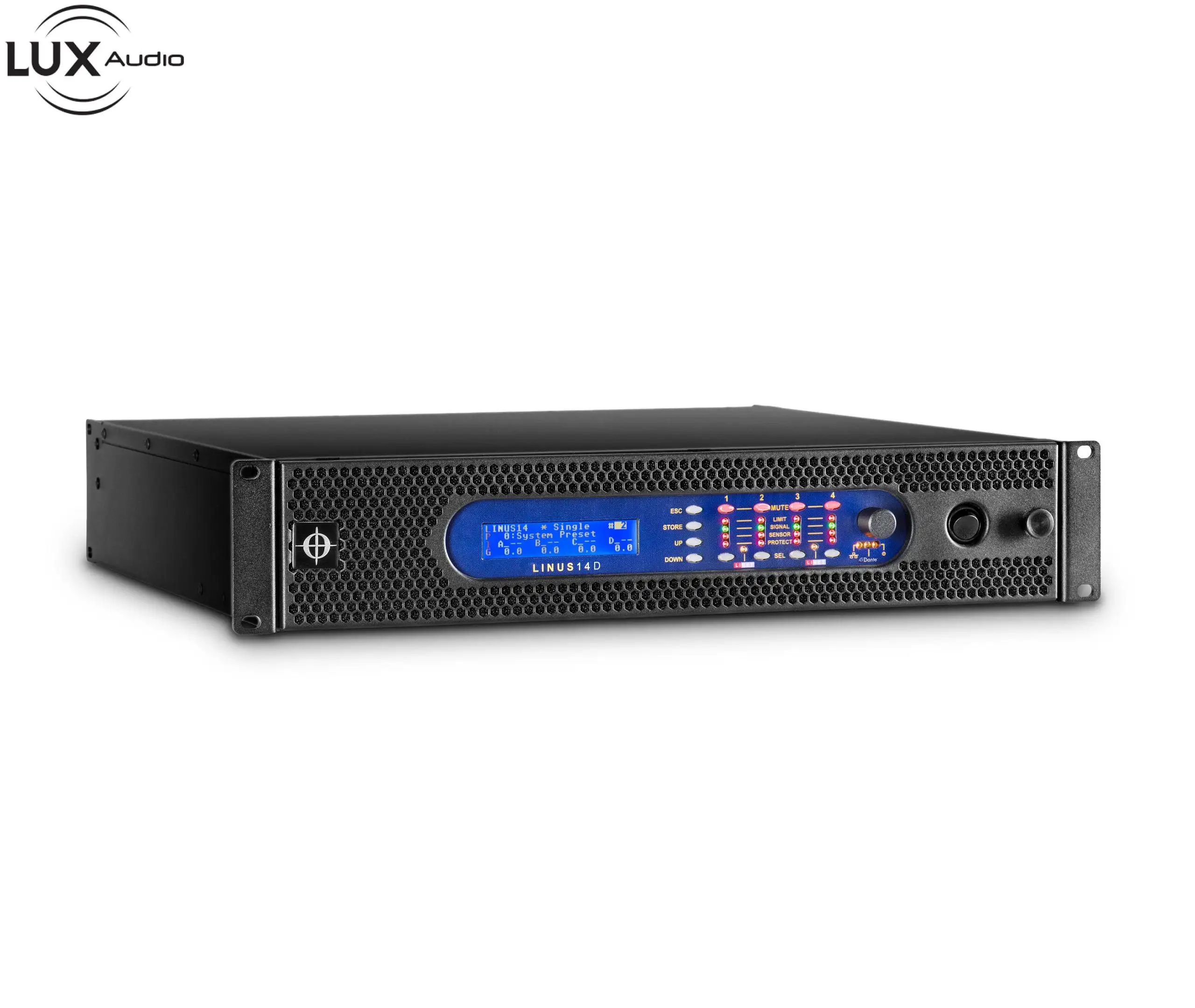 LINUS14 là bộ khuếch đại và bộ so sánh có thể kết nối mạng DSP bốn kênh cung cấp năng lượng sạch 4x 3500 W trong gói 19”/2U trọng lượng nhẹ. Có thể chọn 4 đầu vào âm thanh từ mạng âm thanh kỹ thuật số analog, AES3, LiNET và có thể định tuyến đến bất kỳ đầu ra nào trong số 4 đầu ra.