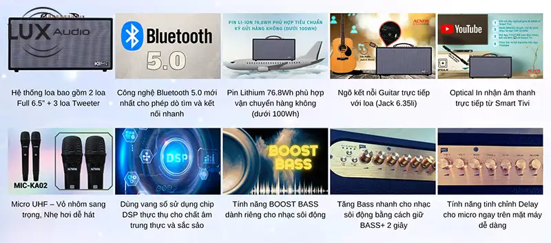 - Loa tích hợp vang số sử dụng Chip DSP thực thụ cho âm thanh trung thực và sắc sảo