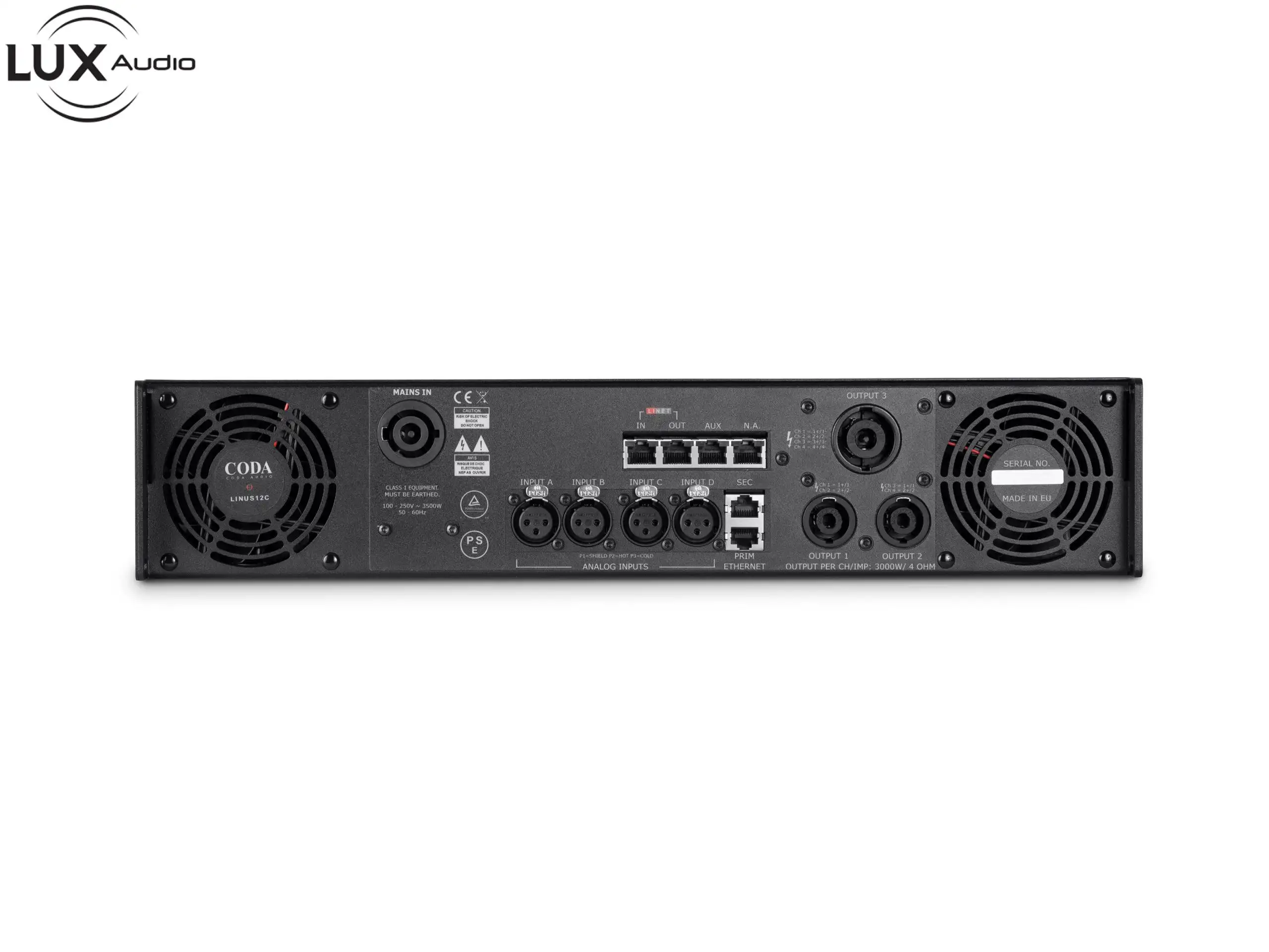 LINUS12C là bộ khuếch đại có thể kết nối mạng DSP bốn kênh cung cấp công suất 4x 3000 W hầu như không bị biến dạng trong một gói 19”/2U trọng lượng nhẹ. Có thể chọn 4 đầu vào âm thanh từ âm thanh kỹ thuật số analog, AES3 hoặc LiNET và có thể định tuyến đến bất kỳ đầu ra nào trong số 4 đầu ra.