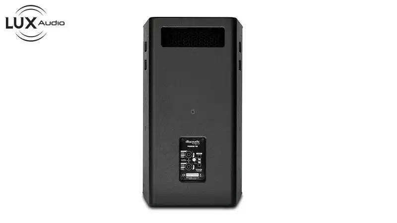 Hệ thống củ loa được bố trí ở mặt trước che chắn bởi tấm ê căng cỡ lớn, logo thương hiệu dBacoustic được bố trí nổi bật ở phía góc phải. Mặt sau là các cổng kết nối và đường ra vào của các thiết bị khác cho người dùng phối ghép dễ dàng.