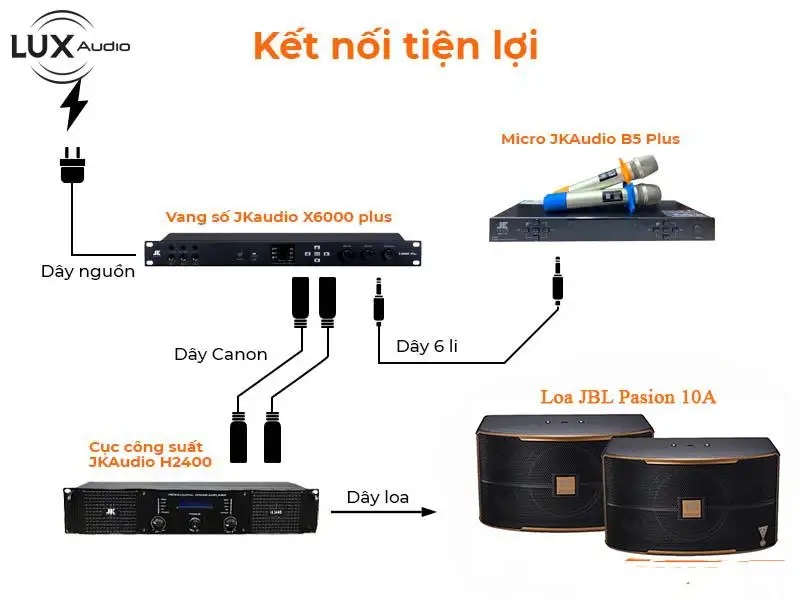 Loa JBL Pasion 10A với độ nhạy là 90dB cùng SPL tối đa là 119dB cho phép dễ dàng phối ghép với các amply karaoke trên thị trường hiện nay như: Amply Jarguar PRO 506N GOLD AF, Amply Jarguar PA 203N Gold AF,..hoặc các mẫu cục đẩy công suất như: JKaudio H2400, JKaudio H4800,…