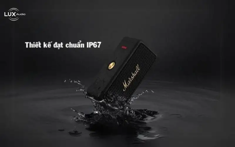 Loa Marshall Emberton 2 cực kỳ cứng cáp và bền bỉ với khả năng chống nước đạt tiêu chuẩn IP67 – cho khả năng kháng hoàn toàn bụi và nước ở độ sâu 1m trong vòng 30 phút. Bụi bẩn và nước mưa sẽ không còn là trở ngại làm ảnh hưởng đến chất lượng âm thanh cũng như là hiệu quả hoạt động của loa.