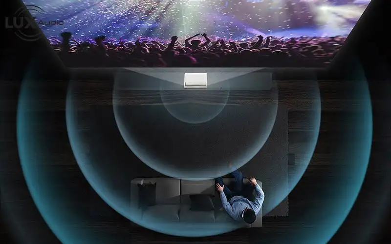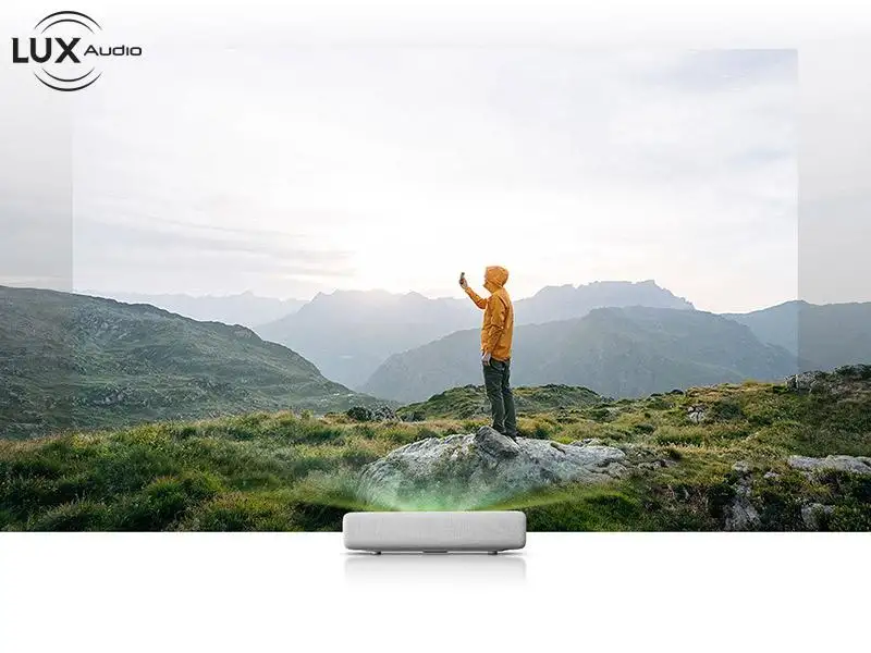 Máy chiếu 4k siêu gần Samsung LSP7T có Âm thanh mạnh mẽ giúp bạn tận hưởng âm thanh chất lượng như rạp chiếu phim tuyệt vời để phù hợp với màn hình tuyệt đẹp với 30 watt âm thanh 2,2 kênh tích hợp.